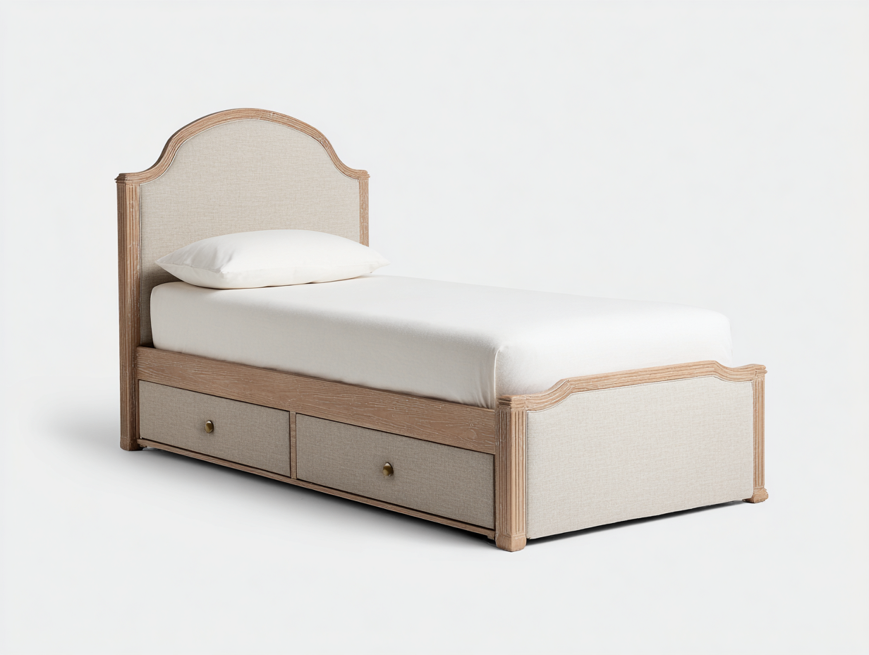 Esta cama individual combina un diseño clásico con soluciones prácticas de almacenamiento, ideal para dormitorios juveniles o de invitados. Su cabecero tapizado aporta confort y un estilo elegante que se integra fácilmente en distintos ambientes.